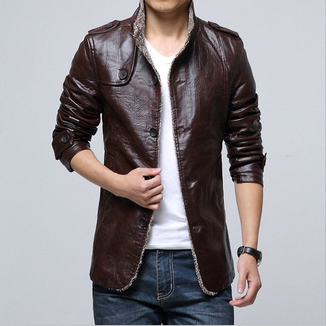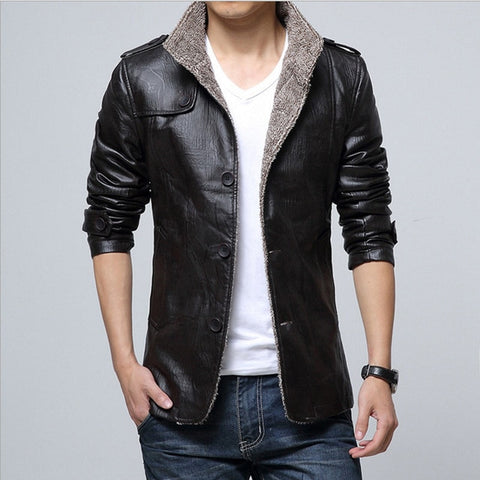 Winter Men Thick Padded Plush Pu Leather Warm Jackets Coats Man Motorcycle Fashion Casual Outwear Fur Freece Overcoat M-7XL